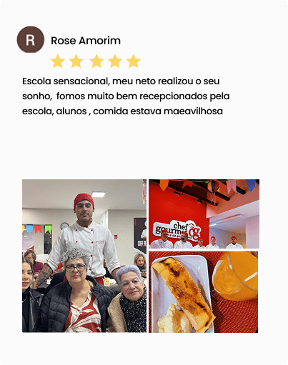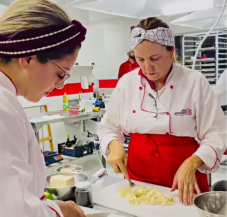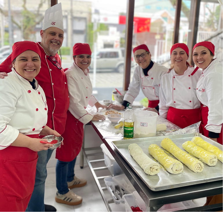 Tudo de forma prática, com professores que explicam o porquê de cada etapa. Você aprende técnica, apresentação, sabor e acabamento, sempre com prática real e acompanhamento próximo dos professores.