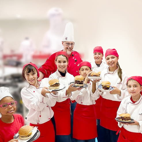 As crianças aprendem técnicas culinárias, higiene, organização e trabalho em equipe em um ambiente seguro.